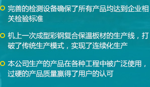 公司是一家瞄準(zhǔn)國際、國內(nèi)市場,集科、工、貿(mào)于一體的綜合性公司,擁有各類先進(jìn)的設(shè)備100余臺(tái)(套),公司自主研發(fā)了新型保溫材料及彩鋼復(fù)合保溫板材連續(xù)生產(chǎn)工藝,建成了機(jī)上一次成型彩鋼復(fù)合保溫板材的生產(chǎn)線...